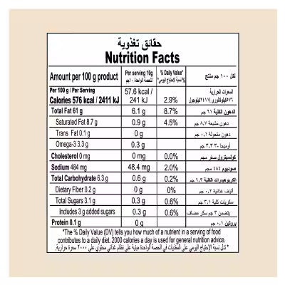 • نكهة المايونيز الكلاسيكية: رائحة متوازنة ولاذعة تحاكي المايونيز التقليدي باستخدام مكونات نباتية عالية الجودة.