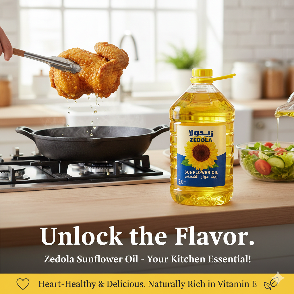 زيت دوار الشمس المكرر الممتاز مصمم للطهي اليومي متعدد الاستخدامات، بنكهة محايدة وثبات حراري عالٍ، مما يجعله مناسبًا للاستخدام المنزلي والاحترافي في المطابخ.