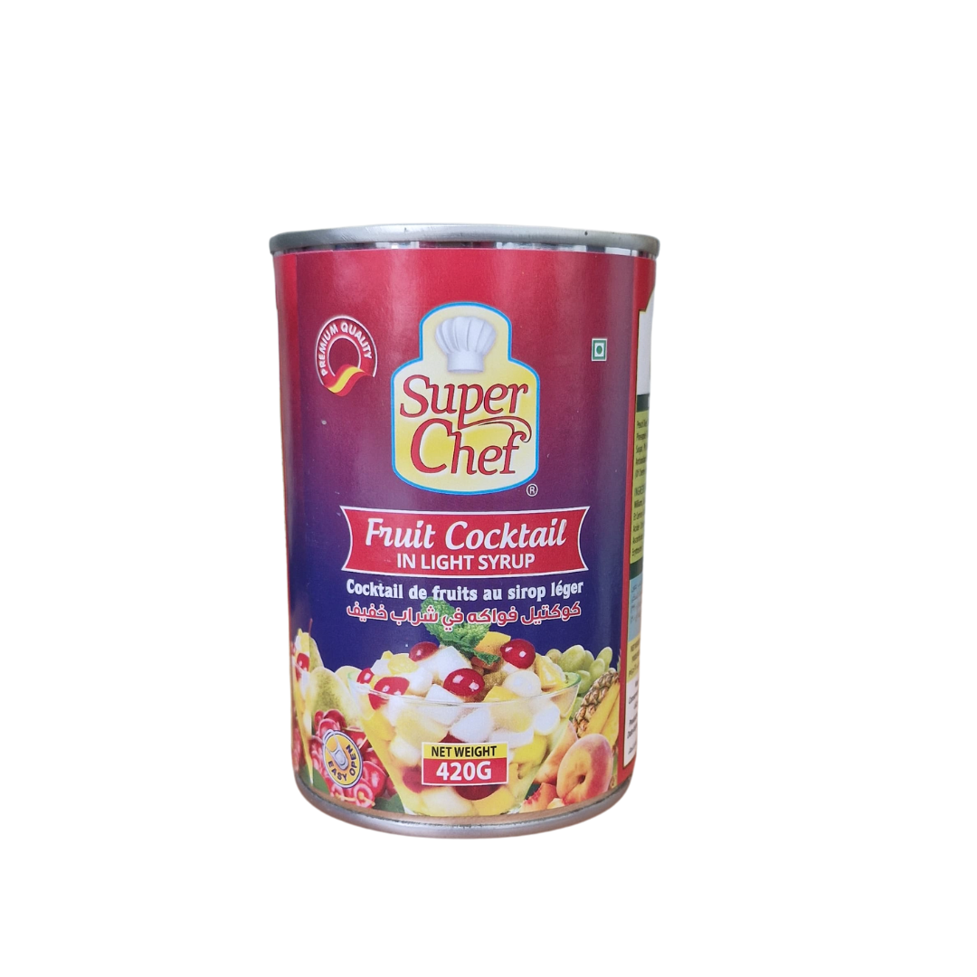 The Super Chef Spanish Fruit Cocktail contains your favourite fruits preserved in sugar. You can eat it straight out of the can or make a colourful topping for cakes and desserts.